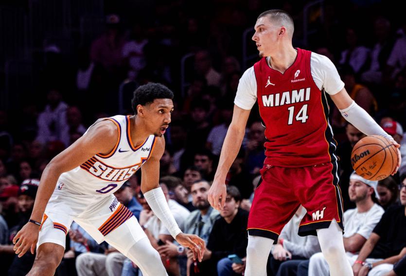 比分直播-热火双星56分拯救希罗,布克24+9+9难救主,太阳无缘20分大逆转
